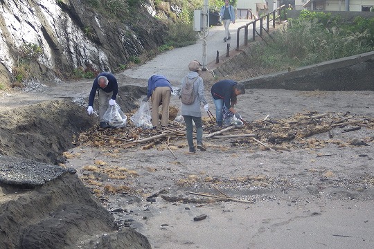 11月1日(土)は、「三浦まちづくりの会」様主催の、恒例の「城ヶ島の海岸清掃」が開催され、ヤマリアメンバーからは2名が参加しました。 西風が強く吹いたため、磯への入り口の西向きの入江には、たくさんの流木や漂着ごみが それ等に混ざって、たくさんのエギも漂着していました。 南向きの磯周りは、漂着ごみは少な目でした。 11月2日(日)AMは、恒例の「三戸浜ビーチクリーン」が開催され、ヤマリアメンバーからは2名が参加しました。 この日も三戸浜を訪れる人はおらず、細かいプラスチック片・ビニール片などを中心に、ごみは少な目でした。