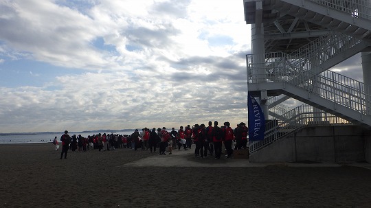 11月29日(土)は、先週に引き続き、「(株)リビエラ」様主催の、「第6回 LOVE OCEAN リビエラ湘南ビーチクリーン」が開催され、22日の「三浦市」→「横須賀市」→「葉山町」に続いて、この日は「大磯町」北浜海岸からスタート、ヤマリアメンバーから1名が参加しました。 朝9:00に大磯港の「津波避難タワー」前には、大勢の人が集まっていました。 「(株)リビエラ」様スタッフの号令で、参加者は海岸の波打ち際に沿って広がります。 そして、横一列で「西湘バイパス」に向かって進み、自分の進路上にある、5㎜四方以下の「マイクロプラスチック」を含む海岸ごみを拾いました。 終了後、プラケースにごみを分別して集め、「津波避難タワー」の上から記念撮影。 さすがの「人海戦術」で、普段のビーチクリーンでは回収不能な、これだけの量の「マイクロプラスチック(予備軍?)」が回収されました。