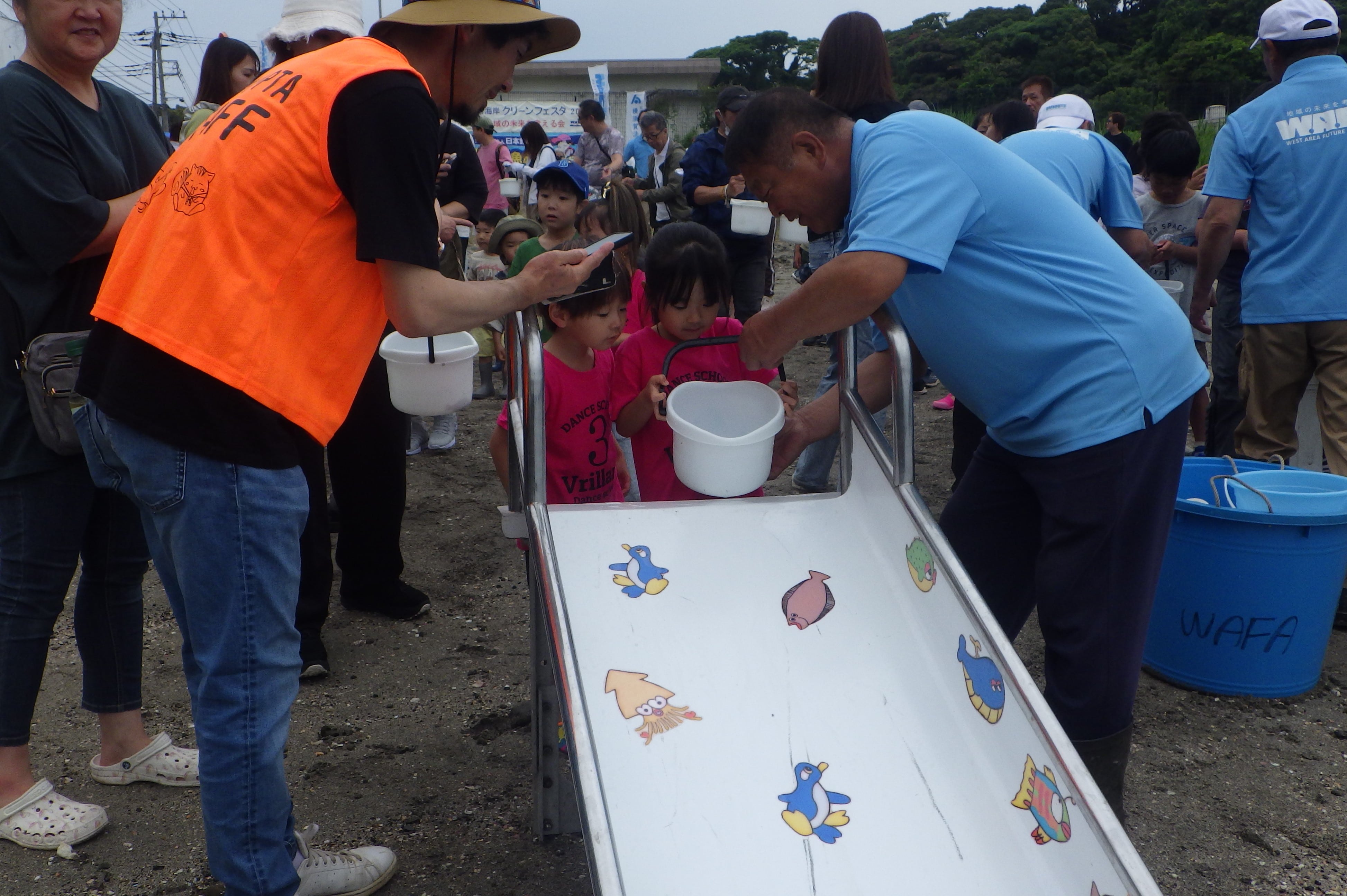 YAMASHITA Mariaが神奈川県支部事務局を務める、(公財)日本釣振興会 神奈川県支部と、WAFA(地域の未来を考える会)の共催イベント「荒崎クリーンフェスタ2025初夏」が、6月8日に横須賀市の「荒埼公園」で開催されました。「ビーチクリーン」「マイクロプラスチック収集」「ヒラメの稚魚放流」の後、メイン会場で「エギの色付け体験」「ペーパーフィッシング」、「模擬店」でフランクフルトやトウモロコシを食べて、最後はお楽しみ抽選会。一日楽しく過ごせました。