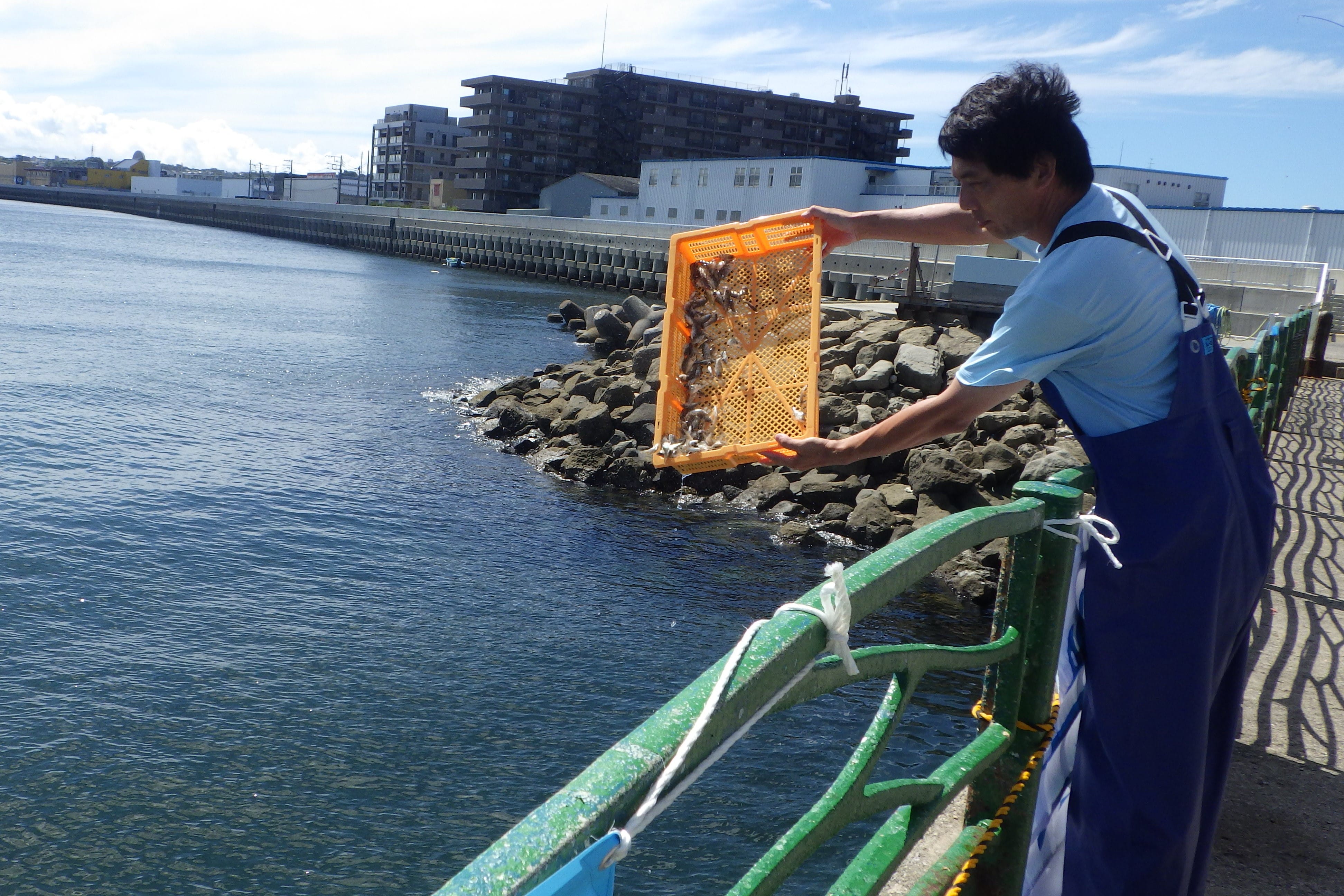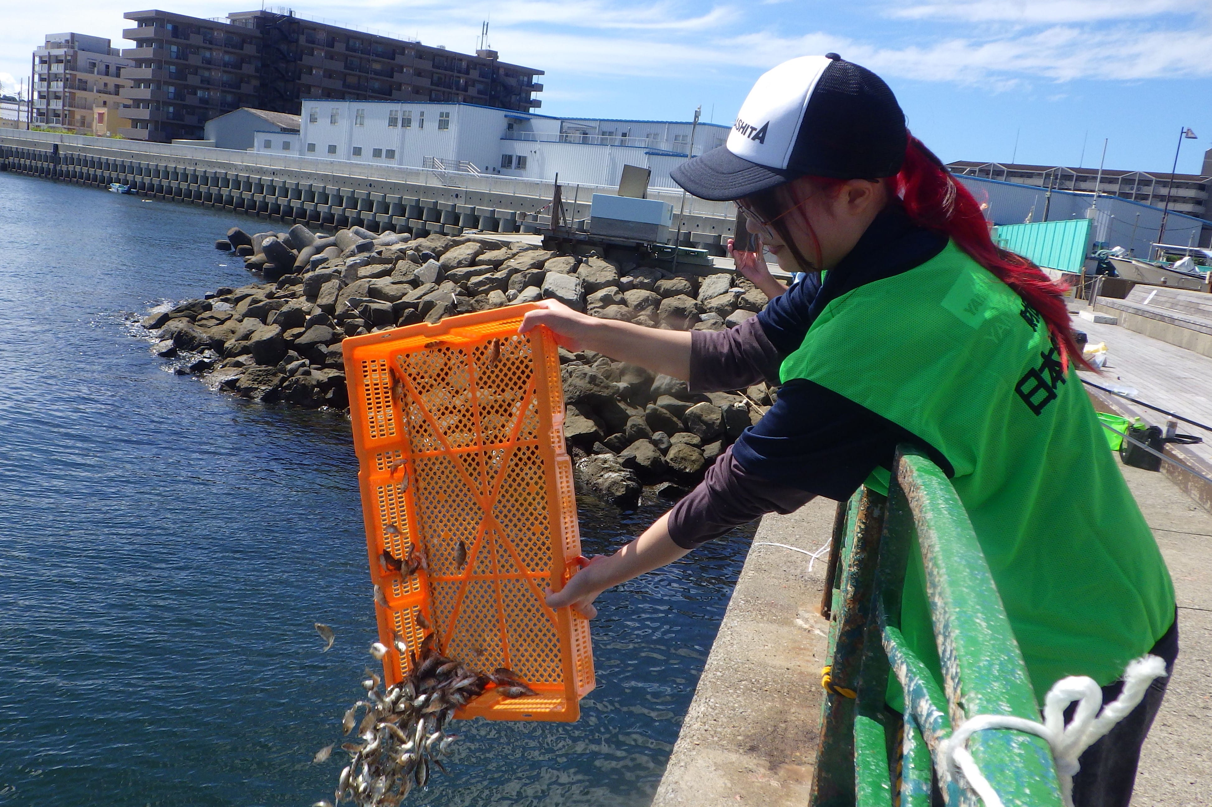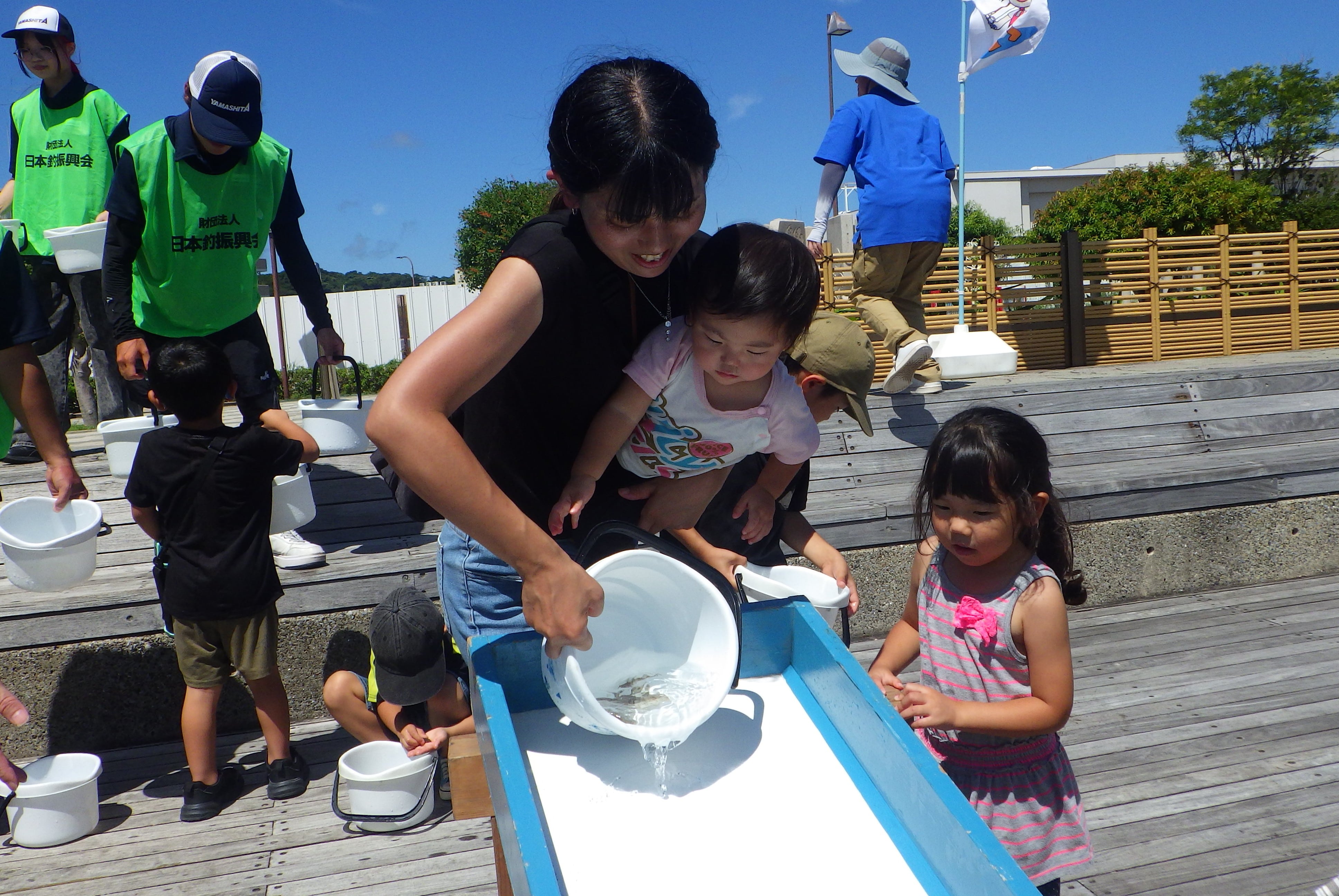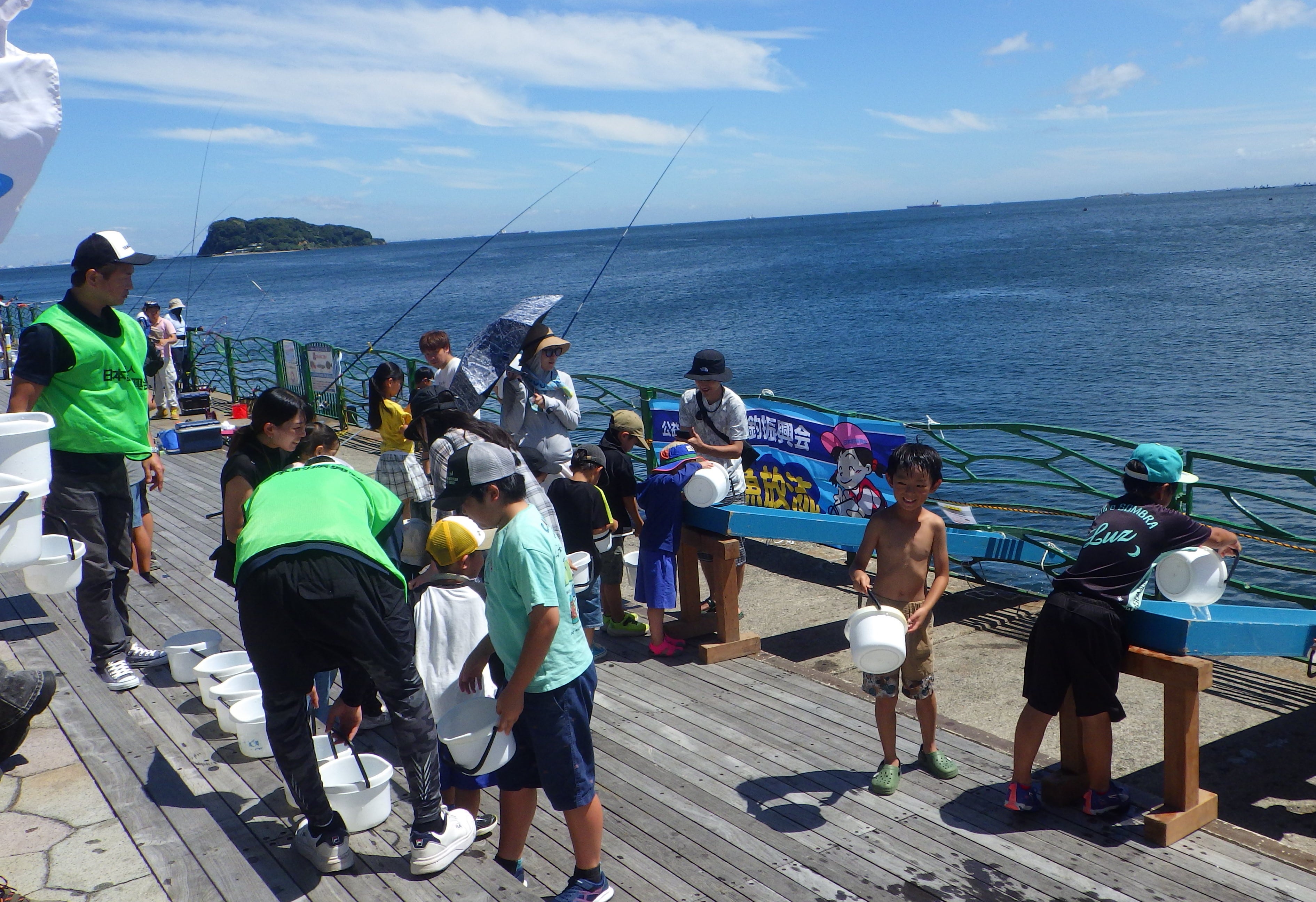 YAMASHITA Mariaが事務局を務める、(公財)日本釣振興会 神奈川県支部による、「メバル稚魚放流」が、横須賀市立「海辺つり公園」で実施されました。「(公財)神奈川県栽培漁業協会」様に用意して頂いた、全長50㎜程のメバルの稚魚5,000匹を放流しました。まずはスタッフの手で、約4,000匹を事前に放流、残りの約1,000匹を、夏休みでつり公園を訪れていた子供達の手で、放流してもらいました。