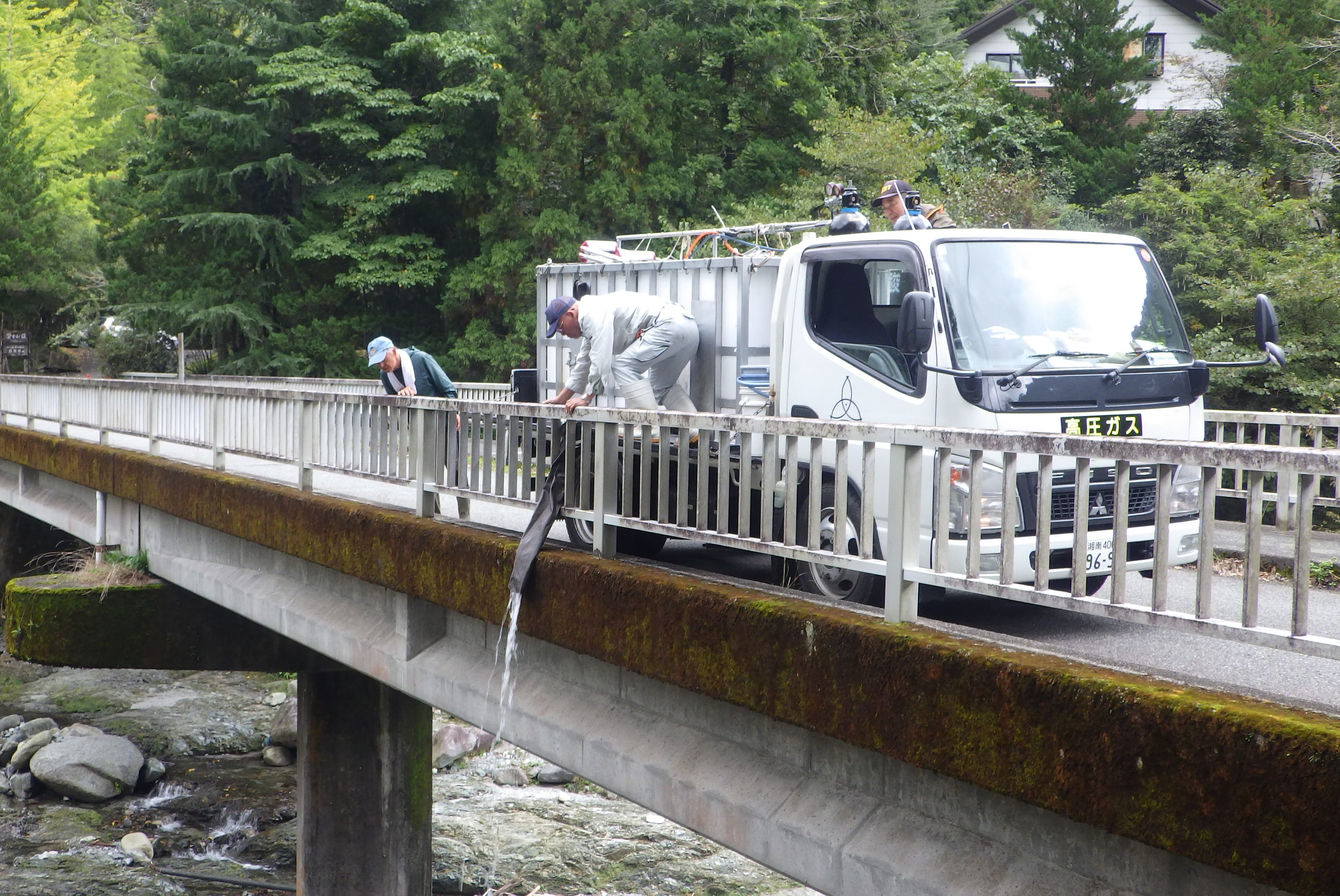 YAMASHITA Mariaが事務局を務める、(公財)日本釣振興会 神奈川県支部と、酒匂川漁業協同組合が、禁漁期間に入ったこの時期に、毎年実施している「やまめ成魚放流」を、今年も10月18日(土)に、丹沢湖に流れ込む世附川と、中川川で実施しました。酒匂川漁協と八丁やまめ養殖センタ―の、2台のトラックで二手に分かれ、それぞれ川の最上流部まで林道を溯り、やまめを小分けしたバケツを持って河原まで降りて、優しく放流しました。今回放流した「やまめ」は15~25㎝と様々、少しでも生き残るように、併せて2,000匹のやまめのうち、考えて工夫しているとの事でした。卵を産んで世代を繋いでくれる個体が残ることを祈りたい放流となりました。