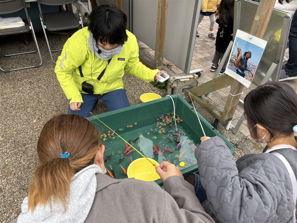 11月23日(祝)に開催された「三崎港町まつり」に出展いたしました。当社のブースでは、取り組みを知っていただくためのクイズを実施し、全問正解された方を対象にエギつりゲームに挑戦していただきました。