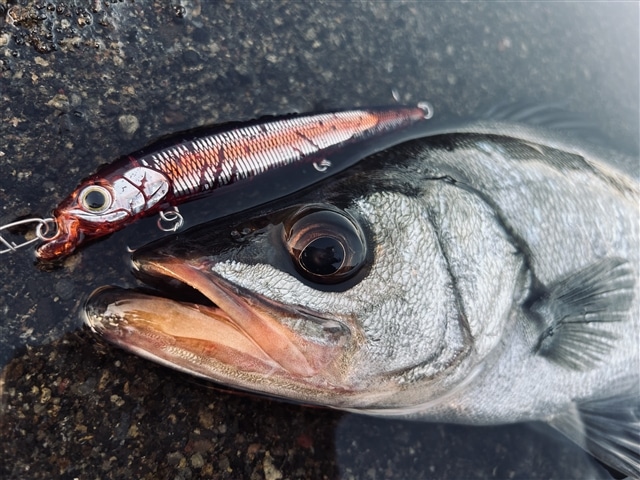 今週は磯靴忘れや寝坊が続き、金曜日にしてようやく仕事前の磯歩きができました。 今朝は潮目が遠く、ベイトの気配もほぼなし。なんとなく雰囲気が良くなさそうな感じ… しながら探っていきますが反応を得られないまま時間だけが過ぎていきます。 気づけばタイムリミットまで残り5分。 反応をよく得られているシルエットホワイトを選択。 時間を気にしながら投げていると水面が割れてまさかのヒット! リリースしたら即帰宅。いつもの電車にも間に合ったので良かったです。 かわいいサイズでしたが嬉しさは大きい1匹でした! |