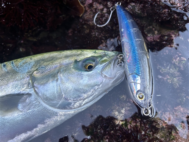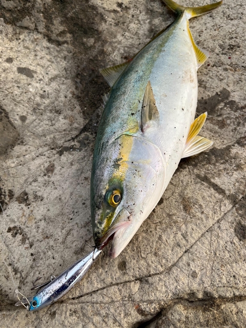 今週は絶対にこの日と期待していた潮回りがやってきました。 いつも通り磯につくとまあまあ風が強く波立っています。 しばらく投げても反応がないので安定のラピードF130にチェンジ。 ベイトは目視できて雰囲気は悪くないので魚はきっといるはず… 1投目。高速リトリーブで誘うとゴツン! そして、足元まで寄せてランディングしようとしたときにフッと… しかしこのままでは帰れません。 いよいよ本当に時間がなくなってきました。 グリグリグリ~、ゴツン!まさかのヒット! ワラサからサイズダウンしていき、かわいいサイズでしたがかなり救われた嬉しい1匹! 今週も超ギリギリでしたが出勤前に魚に触れて何よりです!! |