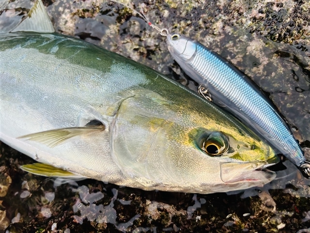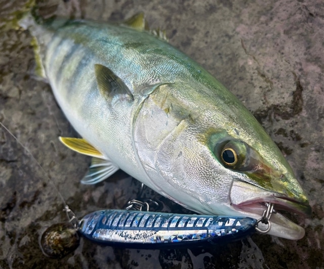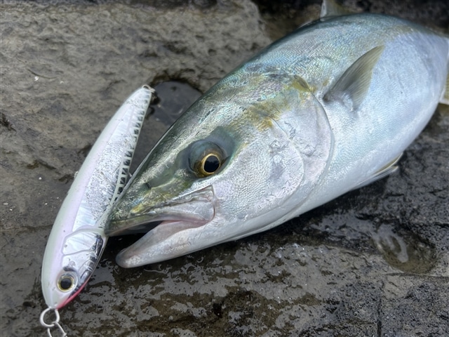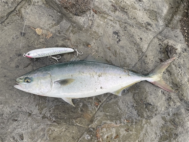朝一かなり寒さを感じる日も多くなってきましたが、青物ハイシーズンに 三浦磯へ早起きして出かけてきました。 当日は中々強い北風に更には雨模様、いわゆるラフコンディションです。 薄明るくなり始める5時半ころから釣りをはじめ、そこから日の出の5:50にかけて 光量が徐々に切り替わっていくタイミングは、 ポップクイーンF105→ラピードF130のシルエット系カラー(シルエットホワイト)→ ラピードF130透過系カラー(ケイムラスリットグロー)とこまめにルアーを変えながらアプローチ。 いい時であれば何かしら反応がありそうですがここまでは無反応。 とにかくこのままではダメだろうと判断し立ち位置変更。 選んだのは最初とは真逆の風表。 渋い状況の中釣れてくれた嬉しい一本です。 この一本が出た後追加を狙いましたが、冷たい北風の中の風表は中々に堪え、 そこまで粘らず納竿としました。 |