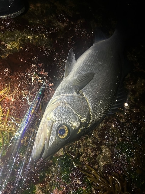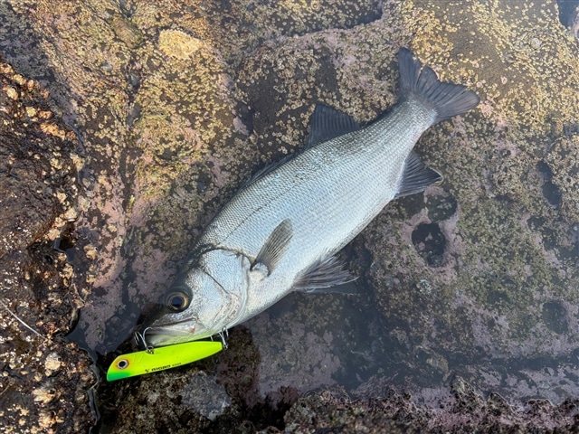 新年初フィッシュは狙い通りヒラスズキでした! 追加なく干潮を迎えた為これにて納竿としました。 |
