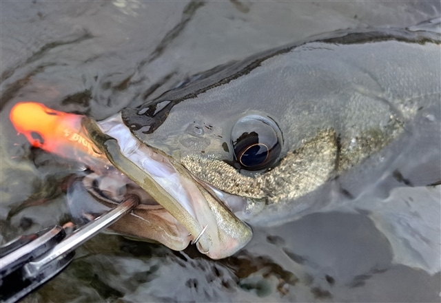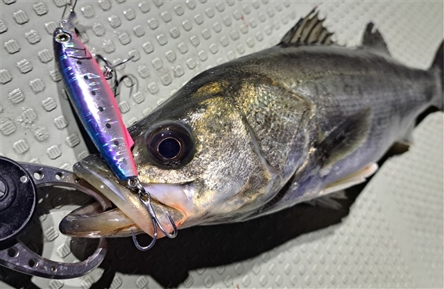 先日、夜風に吹かれながらボートシーバスへ出撃してきました。 私が絶対の信頼を置いている「タイトスラローム」。 「これさえあれば間違いない!」と信じて、ひたすら投げ続けました。 河口やストラクチャー周りなど、 反応がない…… …… …… 中盤でやっとアタリがあるも、無念のバラシ! なんとかかけると…… …… ……小型でした!(約20cm)