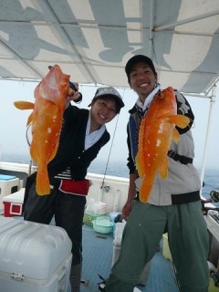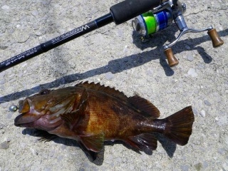 タイ(チャリコに毛が生えた程度)にスズキにカサゴにと釣れまくりです。 |
