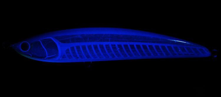 (全身)ケイムラ + (側面)透過フラッシング+(腹部)グロー夜光を施したアピールカラー。