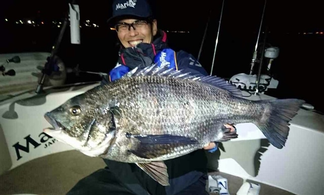 Maria企画開発ブログを御覧の皆様こんにちは♪ 東京都の香西です。 前回に引き続き、今回も絶好調のオフショアライトゲームに船橋の海猫さんから遊びに行ってきました♪ 釣行当日は夕方まで南風が強く、海面はウネリ、濁りも残る中、厳しいゲームを予想しましたが ポイント到着後 数投でヒット♪