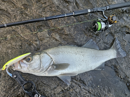 気持ちを切り替えてラインを組み直し、ラピードF190をスローに磯際まで優しく引いてあげるとヒット!