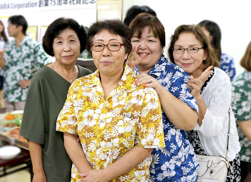 お客様のおかげで創業75周年を迎えることができ、これを記念し、全社員とOB・OGの皆様を含め祝賀パーティーを開催。私たちは「一人でも多くの人に釣りの楽しさ、喜び、感動を提供する」というミッションの元、今後も製品で皆さまをサポートするとともに、釣り人の笑顔のための活動を展開していきます。