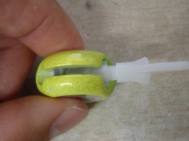白のが通称「差込パーツ」と呼んでます! 「差込パーツ」には半透明のシリコンで出来たチューブが付属しています・・・・ 通称「シリコンチューブ」と呼んでます・・・・当たり前か(*^。^*) 「シリコンチューブ」が短いやん(・へ・) 「ゑびすがケチった」と思った方がいるかも? 「シリコンチューブ」が短いことが「ほど良い差込感」を生み出すミソです(=^・・^=) 玉に差込パーツを差し込みます↓