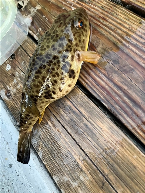 2025年最後のフグ釣りにいつもお世話になっている寅之介さんへ釣行してきました。 1㎏/4000円位)しました。 割れた形状ですので塩でしっかりと〆て1㎝程度にカットし準備をしました。 ベラ・ベラ・たまにフグという感じで釣果がでました。 釣り方はいつものように根がかりを避けながら、着底直後に1m程度底を切りゆっくりと落とし込んで アタリを取るイメージで誘い続けます。 磯周りはアカメフグの確率が高くなるので我慢をしながら釣り続けて、なんとかアカメ1匹キャッチできました。
