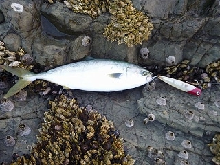 ■釣行レポート 明るくなってからはペンシルで青物狙い。 それからしばらくしてもう1匹ヒットしましたが、これは惜しくもフックアウト! 詳しくは |