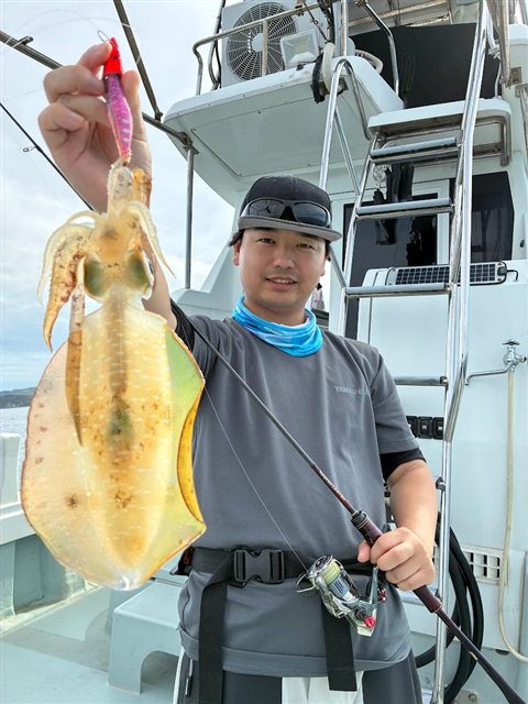 Eさんと和歌山県田辺市のサウスカレントにて ティップランエギングに行ってきました。 今回は、水深30m前後でエギの重量は40g前後で開始です! 開始して1時間程は厳しい状況が続きます。 諦めずにシャクるものの、痛恨の根がかり、、、、 完全に群れに乗り遅れてしまった、、、と思いつつも 上がって来たのは400g前後のこの時期では良型のアオリイカ!! エギ王LIVE3.0号のモンスターレッドとエギ王TRシンカーの組み合わせです。 その後もエギ王LIVEが好調で、3.0号の軍艦グリーンでも追加! アタリが遠のいてきたら、2.5号に変更をすることでさらに追加を重ね、 計6杯で終了となりました。 これからティップランシーズンも本格化する為、また行ってきます! |