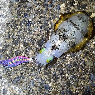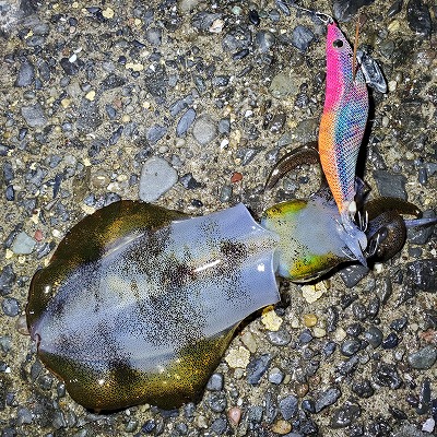前日は惜しくも1アタリのみで終わってしまい、 悔しさが残る結果に…。 当日は小雨まじりの寒空。夜中ということもあり、釣り場には先行者が一人だけ。 そんな中、キャストを続けること30分―― 「これはチャンス!」と同じ流れを丁寧に攻めようとローテーションを続けると、 そこでエギを3号にチェンジ。 ドンッ!っと気持ちいいアタリで再びヒット! さらに数投後、カラーを変えて同じようにボトム付近を探ると―― そして、再びカラーをローテーションしながら同じパターンで―― 風対策で使った3.0号エギが、むしろ水中でちょうどいい馴染み具合を見せてくれました。 結果、前日とは打って変わって短時間ながらも好釣果! また行ってきます!! |