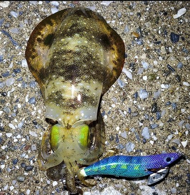 この釣り方が功を奏したのか、釣況厳しい今季としてはなかなかいい ペースでヒットしてくれます! しかし!夢のような時間はなかなか長くは続きません・・・ 時折ちらついていた雨が本格化してしまい、気がついたらびしょ濡れに・・・ 結局その後は1パイを追加したところで釣りを終了し、気分が熱いうちに帰路につきました。 今回のヒットエギは、釣れたイカ4ハイ中、3ハイがエギ王Kのティップランカラーでした。 今季は大活躍しています。 何気に、サーチや490を織り交ぜて使うと、 自分の仮説がハマると釣りは楽しいですね! |