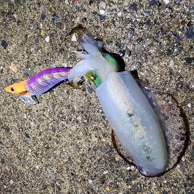 先週完全にホゲった悔しさを胸に、再び三浦半島南部岸壁へリベンジエギングに行ってきました! しかし… 人!人!!人!!! そして空いてるスペースで両隣の方々に声をかけ釣り開始です。 しかし、投げども投げども、エギは投げた方向からまっすぐ戻ってくるうえに、 海から生命感が感じられません・・・ そんな中、両隣のアングラーも共に諦めムードで釣り談義に花が咲きます。 そこで、エギを2.5号にローテーションし、流れの無いまったりした海をスローに スローにしゃべりながら探っていきます! 気の無いおしゃべりシャクリが効いたのか?!ティップにツン!っと 気持ちがいいアタリが出てくれました。 さらにその後は時間の経過とともに潮に動きが出てきて、それに対応すべく エギローテーションを繰り返し・・・