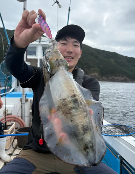 Eさんと三重県南伊勢町の明丸さんにてティップランに行ってきました! 穏やかな湾内で快適に釣りが出来ました。 しては良いサイズのアオリイカが釣れているようです。