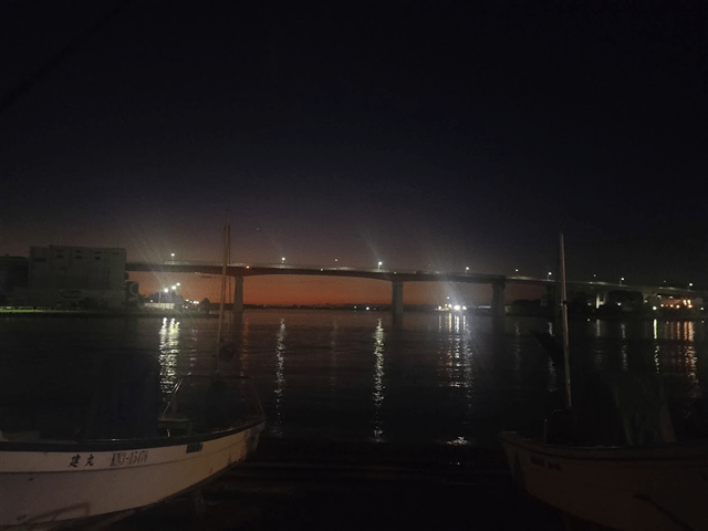 いずれも1kg弱の良型! すると、7時を過ぎたころ月が顔を見せ、まるで照らされているかのように明るくなりました。