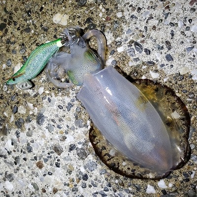 海の回復具合の確認も兼ねて、三浦半島南部岸壁へエギングに行ってきました! 当日は祝日夕方、しかも小雨まじりにつき、岸壁は空き空きなのでは?!っと 意気揚々と赴きましたが、 そして、キャストすること約30分、あたりも暗くなり、今夜も「無」かなぁと 気持ちが切れかけたその時、 ラインが走って反射的にフッキング! 2.5号から3号まで様々なエギをローテーションしていましたが、 濁り潮にもよく光る「ホタルエビ」の3号が良い仕事をしてくれました。 さらにその後も、様々なエギをぐるぐる回してまたもやヒット! イカは違えど、ヒットしたのはまたもや「ホタルエビ」でした。 これはひょっとしたら今日は「ホタルエビ」もしくは490Gが 効果的なのか?!っと一人で勝手に活性が上がってきましたが、 まさかの根がかりでヒットエギをロスト・・・ 結局その後はしばらくキャストを続けるも、ヒットエギのロストもあり、 気持ちも切れてしまったのでエギングを終了としました。 とは言え、今回は何週間ぶりかの久しぶりの釣果です! |