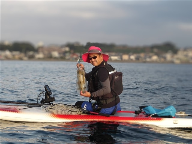 先輩にアテンドしていただき「SUP ティップランエギング」を楽しんでまいりました。 3週ほど前からチャレンジしていたSUP ティップランエギング 当の先輩は前日に予定があるため参戦はビミョ~と聞いておりましたが、 4:30「行くよ!」と連絡が参りました(笑) 現場は予報以上に風もなく、ティップランには少し厳しい状況?と いう感じでしたが開始1時間しないくらいで私にファーストヒット! 小型ですが嬉しい1杯♪