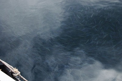 今回出会った事で、 良い環境を表す状況の写真を一つ見せます。 上の写真ですが、 ある港内の様子なのですが、 よーく手前側をみると・・・ 魚が見えませんか?? 奥の方にも、波紋が見えるのですが、 実は・・・ 港の中 全部がムロアジの絨毯なんです!!(笑)