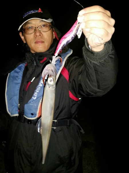 各地で春一番が吹き、花粉症の方が辛い次期に突入してきました。 そんな声を聞き、私も先週末釣行!土曜日の夕マズメから釣り場に入りましたが、 直ぐに同行者にもヒット!こちらは冬の風物詩ヤリイカ(ササイカ)。