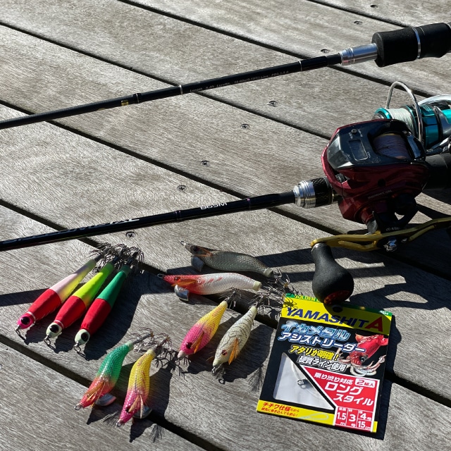 オモリはなるべくしゃくった時の抵抗が少ない、細身のものが使いやすいでしょう。 タックルに関しては専用のタックルも発売されていますが、普段使用しているイカメタルタックルをそのまま流用できます。