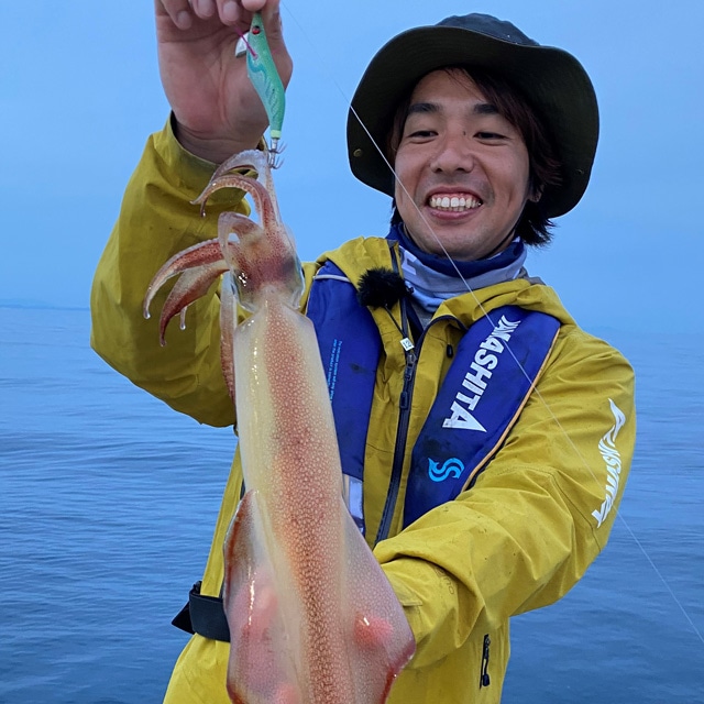 ヤリイカは比較的低水温を好むイカで、水温が下がり始める晩秋から早春にかけて沿岸部に接岸し釣りやすいシーズンを迎えます。大型になるイカで、オスは胴長50㎝を超え、一般に大型のヤリイカは「パラソル」と呼ばれています。