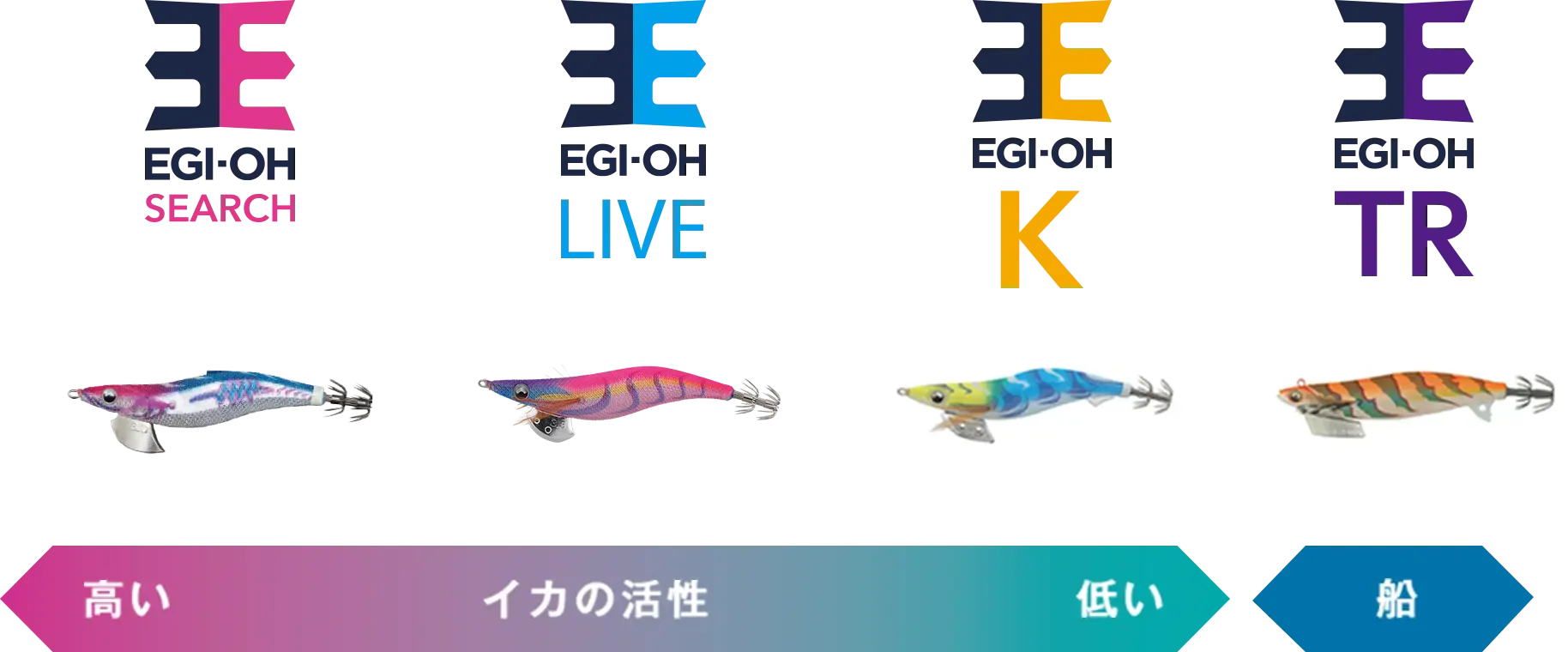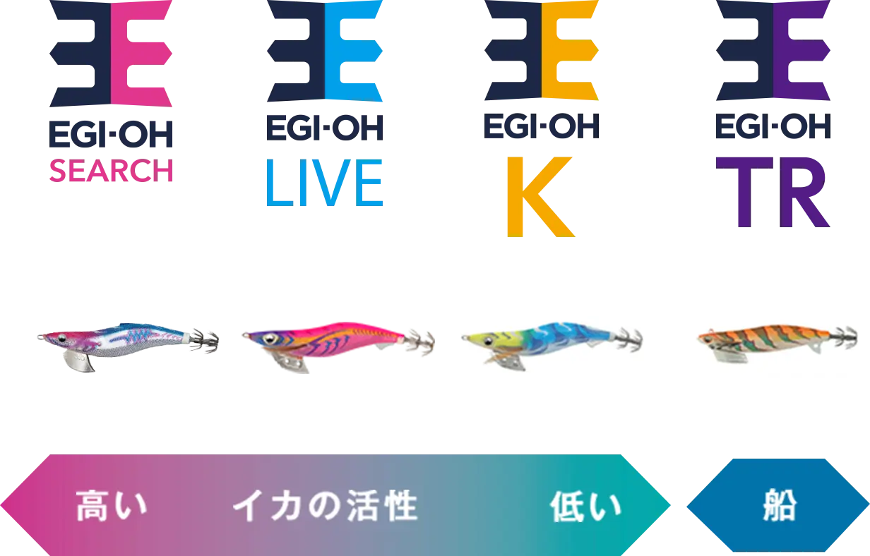 エギ王シリーズは、イカの活性に応じて使い分けることで釣果を伸ばせます。