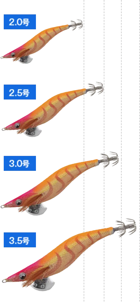 | シャロー | ![]() | 水深の浅いエリアや、ゆっくり見せたいときに適したモデル。 エギのサイズを変更することなくフォールスピードに変化を持たせることで、低活性なイカに効果的。 |