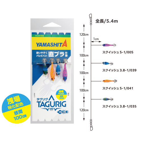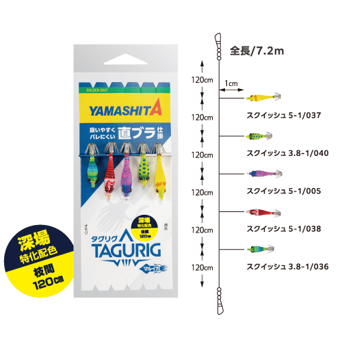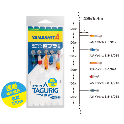 | 646-634 | タグリグ SSTB 3.8/5-1 5本 S | 3.8cm / 5cm | 6.4m | 4号 / 1cm | 4号 / 100cm間 | フロロカーボン |